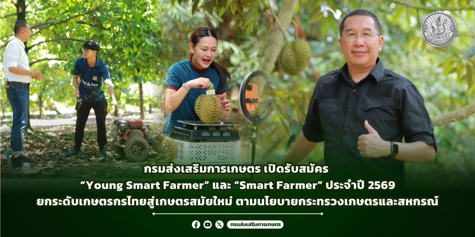 กรมส่งเสริมการเกษตร เปิดรับสมัครเกษตรกรทั่วประเทศ เข้าร่วมการพัฒนาเกษตรกรรุ่นใหม่ (Young Smart Farmer : YSF) และเกษตรกรปราดเปรื่อง (Smart Farmer : SF) ประจำปี 2569 เพื่อเสริมสร้างศักยภาพเกษตรกรให้มีความรู้ ทักษะ และทัศนคติที่สอดคล้องกับการทำเกษตรสมัยใหม่ เท่าทันต่อการเปลี่ยนแปลงของสภาพภูมิอากาศ และพร้อมต่อยอดสู่การเป็นผู้ประกอบการเกษตรที่มีความคิดสร้างสรรค์ สามารถแข่งขันได้ในตลาดสมัยใหม่