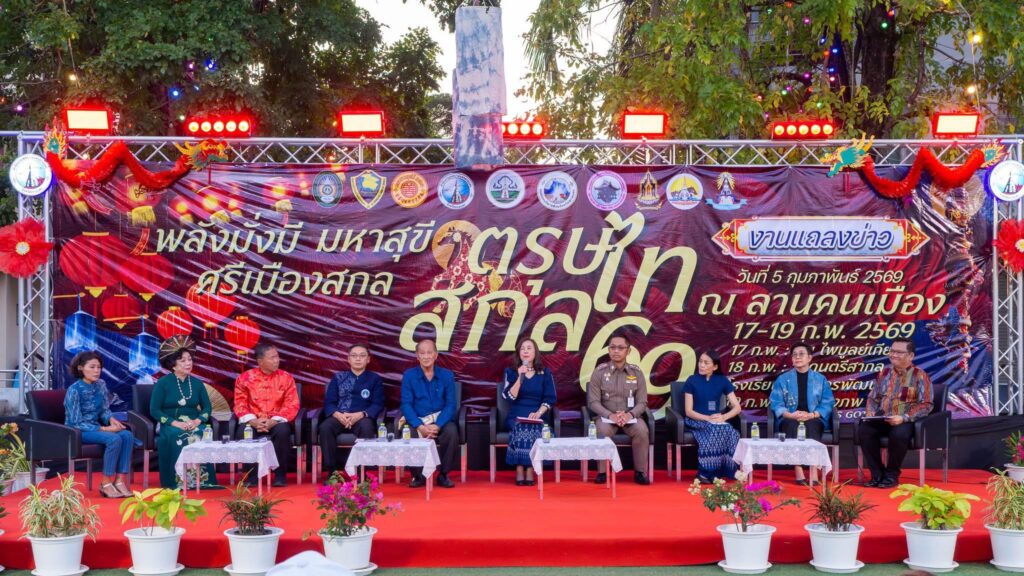 วันที่ 5 กุมภาพันธ์ 2569 นางสาว สุนันทา หมื่นแก้วณภา เกษตรจังหวัดสกลนคร ร่วมรับฟังแถลงข่าวจัดงานโครงการสานสัมพันธ์ศิลปวัฒนธรรม และประเพณีไทยจีนเวียดนาม (ตรุษไทสกล) จังหวัดสกลนคร ประจำปี 2569 ณ บริเวณลานคนเมือง อำเภอเมืองสกลนคร จังหวัดสกลนคร โดยมีนางรณิดา เหลืองฐิติสกุล ผู้ว่าราชการจังหวัดสกลนคร เป็นประธานในการแถลงข่าวครั้งนี้