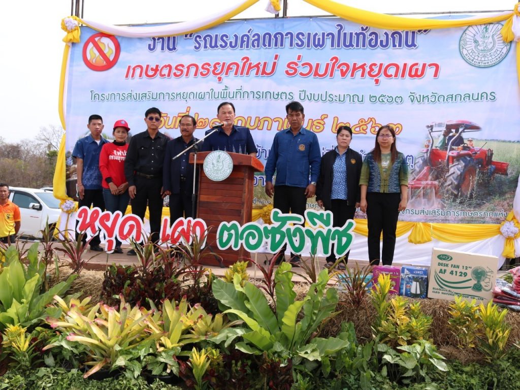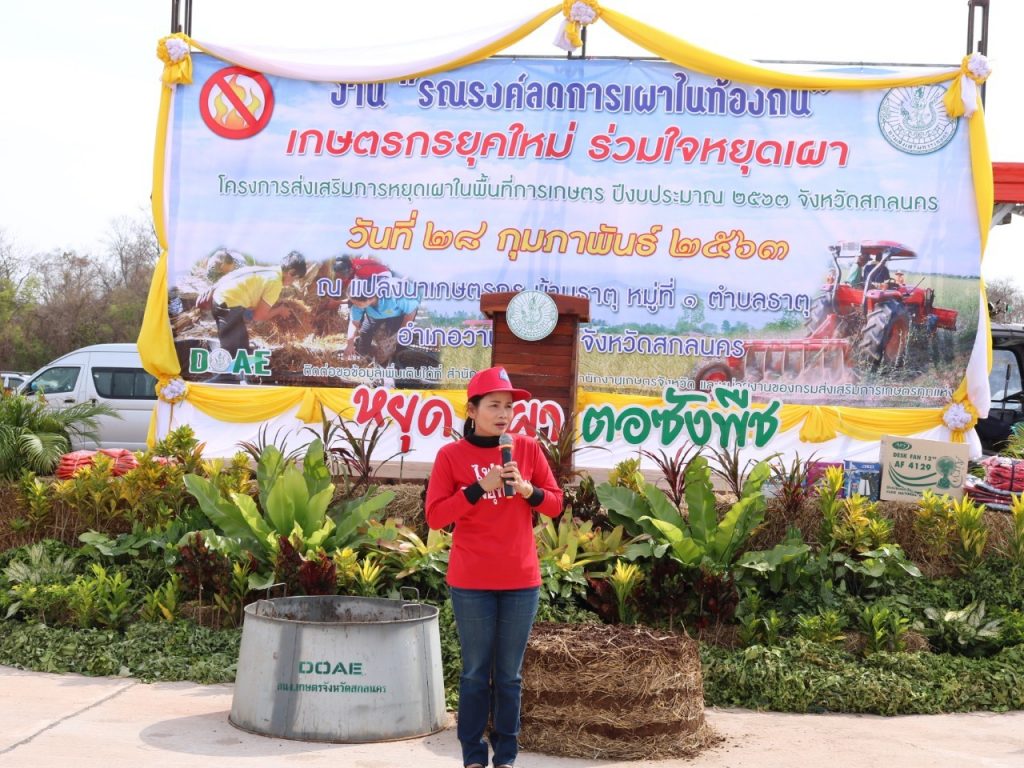 รวมถึงเสริมสร้างองค์ความรู้และจิตสำนึกของเกษตรกรให้ตระหนักถึงปัญหาการเผาในพื้นที่การเกษตร ซึ่งสำนักงานเกษตรจังหวัดสกลนคร ได้กำหนดดำเนินการในวันนี้ ณ แปลงนาของเกษตรกร บ้านธาตุ หมู่ที่ 1 ตำบลธาตุ อำเภอวานรนิวาส จังหวัดสกลนคร เกษตรกรเป้าหมาย จำนวน 200 ราย