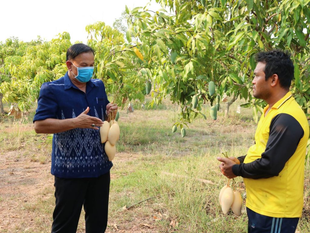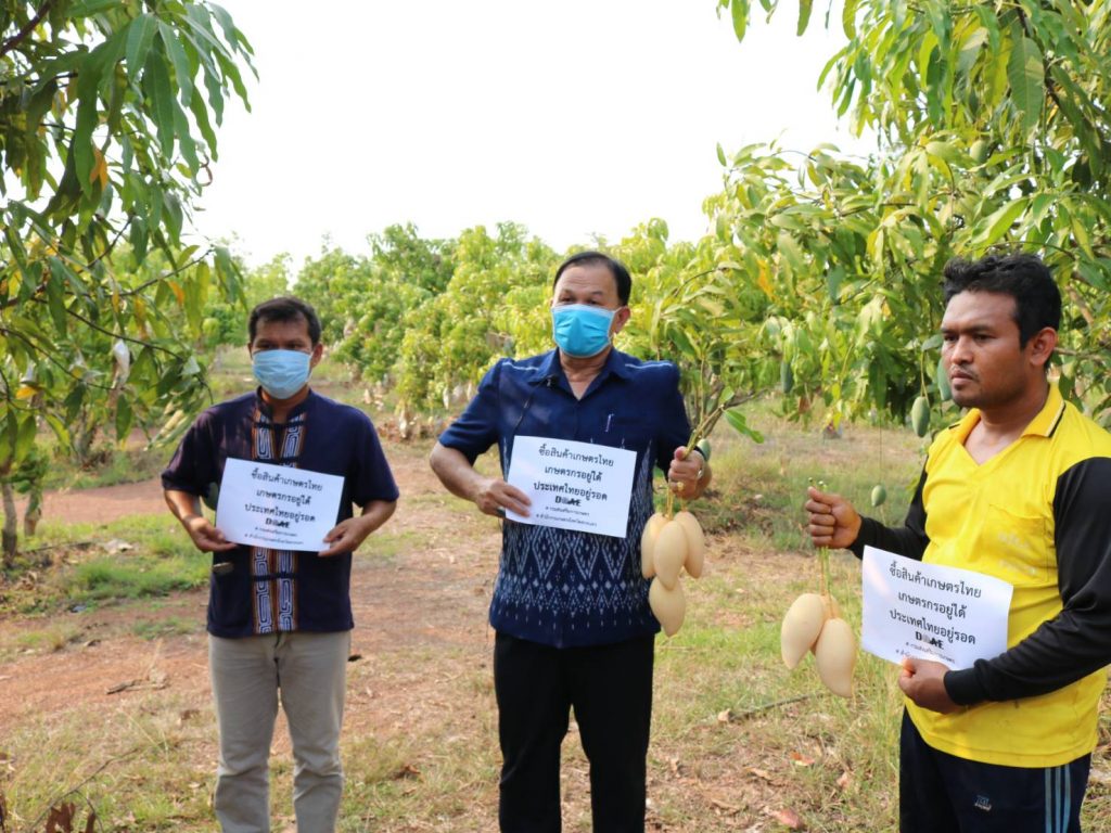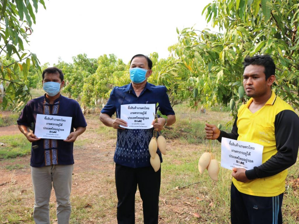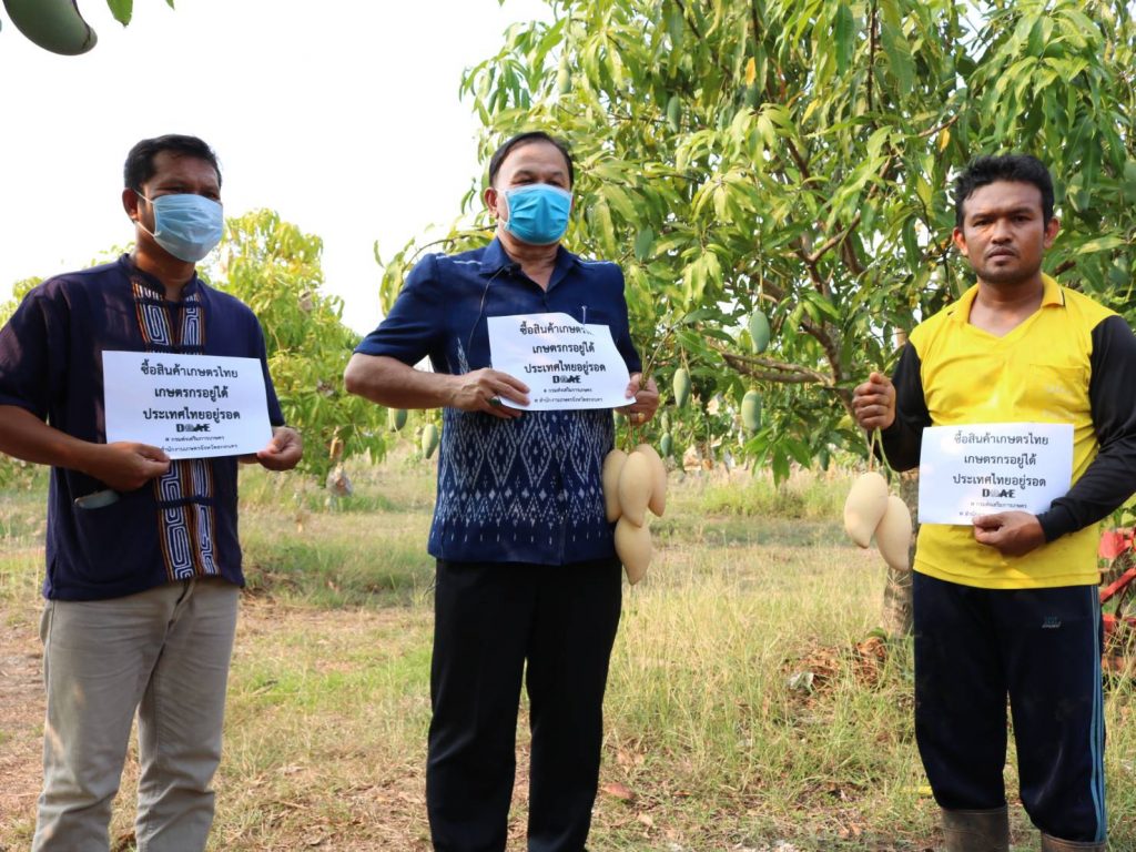 นายประยงค์ ภูดินทราย เกษตรจังหวัดสกลนคร ส่งเสริมการซื้อสินค้าเกษตรไทย เกษตรกรอยู่ได้ ประเทศไทยอยู่รอด โดยลงพื้นที่เยี่ยมแปลงปลูกมะม่วง สวนน้ำฟ้า ม.5 ตำบลนาตงวัฒนา อำเภอโพนนาแก้ว จังหวัดสกลนคร โดยได้ปลูกมะม่วงพันธุ์น้ำดอกไม้สีทอง มะม่วงพันธุ์เขียวเสวย และอื่นๆมากมายบนพื้นที่ 60 ไร่ ซึ่งผลผลิตได้เริ่มเก็บเกี่ยวจำหน่ายและจัดส่งให้กับพ่อค้า ประมาณ วันละ 100-200 กิโลกรัม และจะมีผลผลิตออกมากในช่วงกลางเดือนเมษายน 2563 ประมาณ 4-5 ตัน แต่ด้วยสถานการณ์สถานการณ์การควบคุมการระบาดของเชื้อโรคไวรัสโคโรน่า COVID-19 การจำหน่ายและจัดส่งสินค้าทำได้ยาก ทำให้มียอดการสั่งซื้อลดลงมาก จึงจำหน่ายได้เฉพาะในพื้นที่ ไม่สามารถส่งสินค้าออกได้