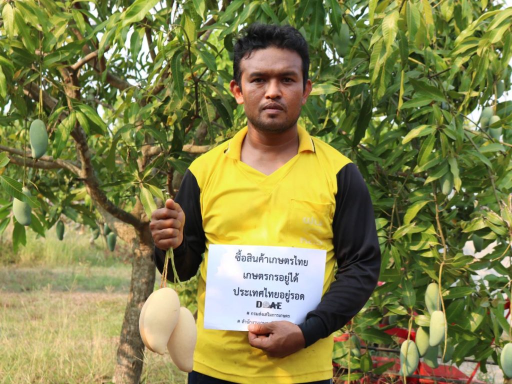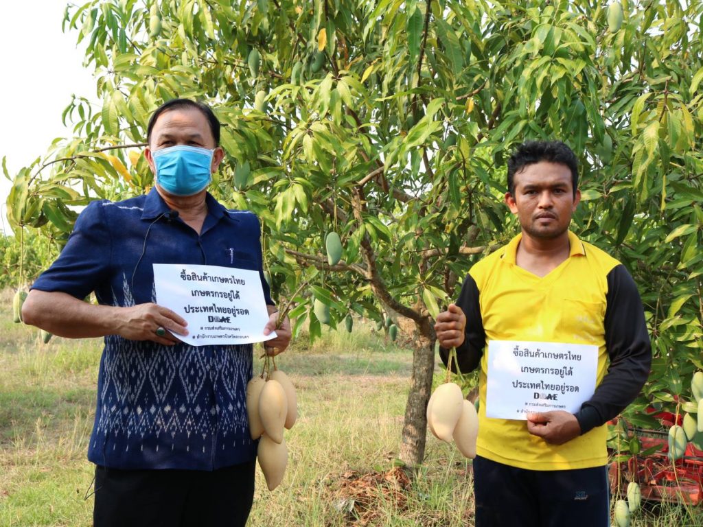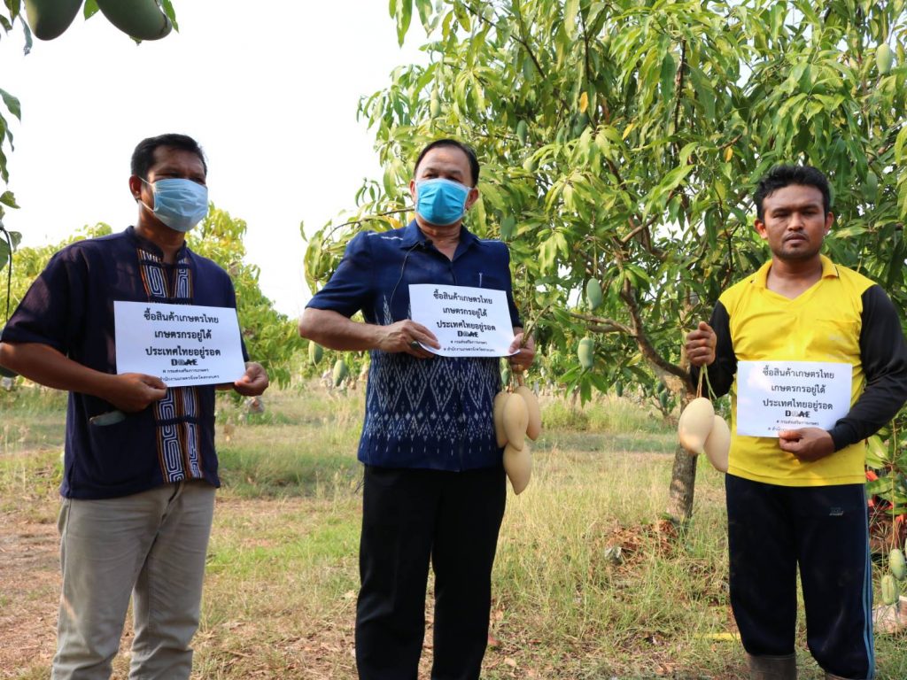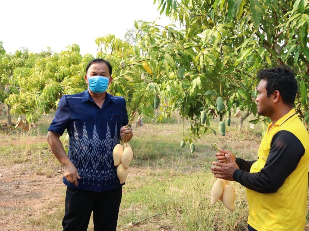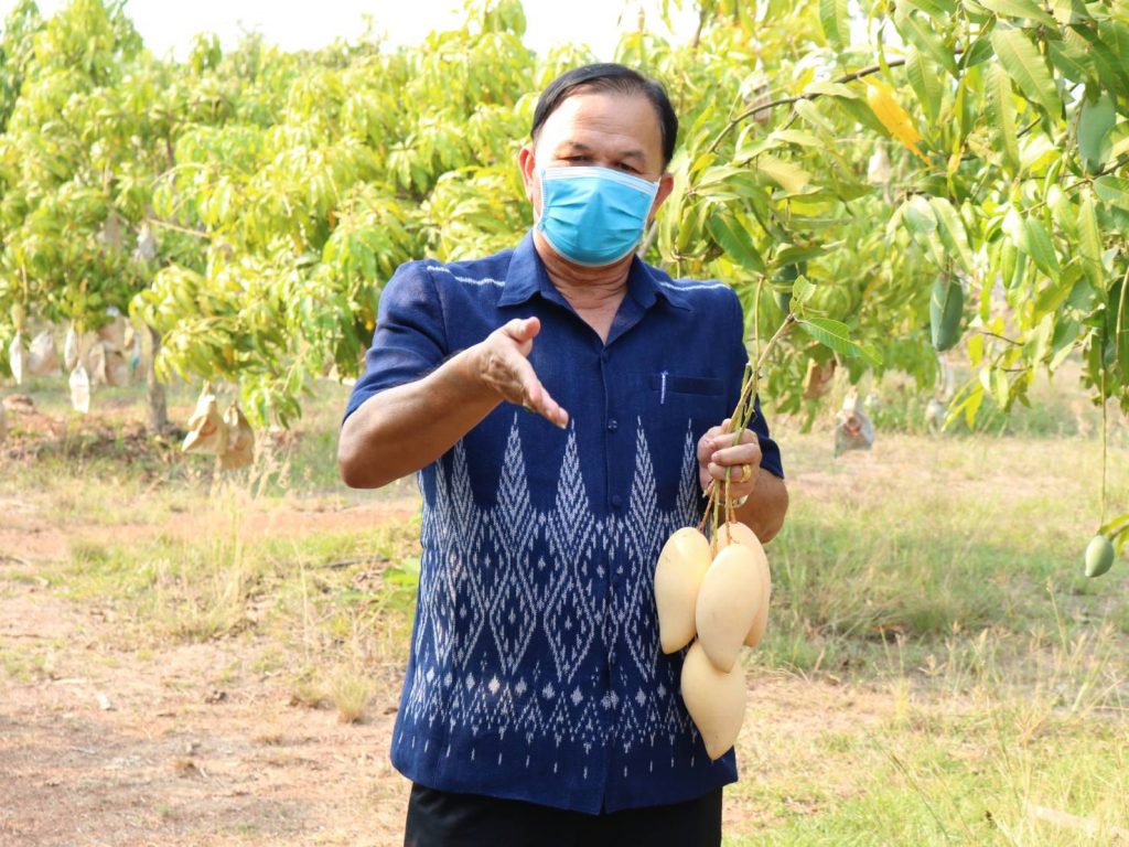 นายประยงค์ ภูดินทราย เกษตรจังหวัดสกลนคร ส่งเสริมการซื้อสินค้าเกษตรไทย เกษตรกรอยู่ได้ ประเทศไทยอยู่รอด โดยลงพื้นที่เยี่ยมแปลงปลูกมะม่วง สวนน้ำฟ้า ม.5 ตำบลนาตงวัฒนา อำเภอโพนนาแก้ว จังหวัดสกลนคร โดยได้ปลูกมะม่วงพันธุ์น้ำดอกไม้สีทอง มะม่วงพันธุ์เขียวเสวย และอื่นๆมากมายบนพื้นที่ 60 ไร่ ซึ่งผลผลิตได้เริ่มเก็บเกี่ยวจำหน่ายและจัดส่งให้กับพ่อค้า ประมาณ วันละ 100-200 กิโลกรัม และจะมีผลผลิตออกมากในช่วงกลางเดือนเมษายน 2563 ประมาณ 4-5 ตัน แต่ด้วยสถานการณ์สถานการณ์การควบคุมการระบาดของเชื้อโรคไวรัสโคโรน่า COVID-19 การจำหน่ายและจัดส่งสินค้าทำได้ยาก ทำให้มียอดการสั่งซื้อลดลงมาก จึงจำหน่ายได้เฉพาะในพื้นที่ ไม่สามารถส่งสินค้าออกได้