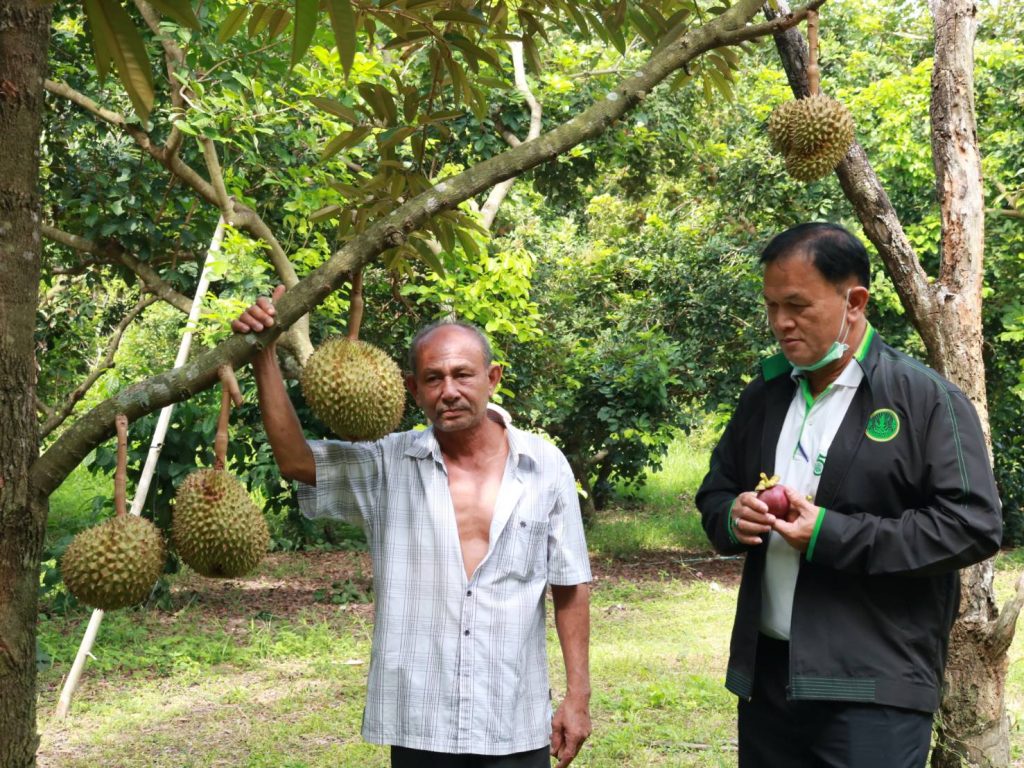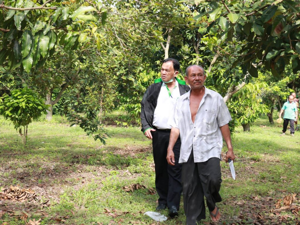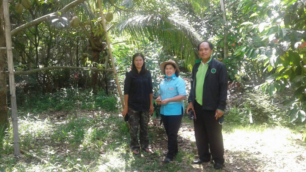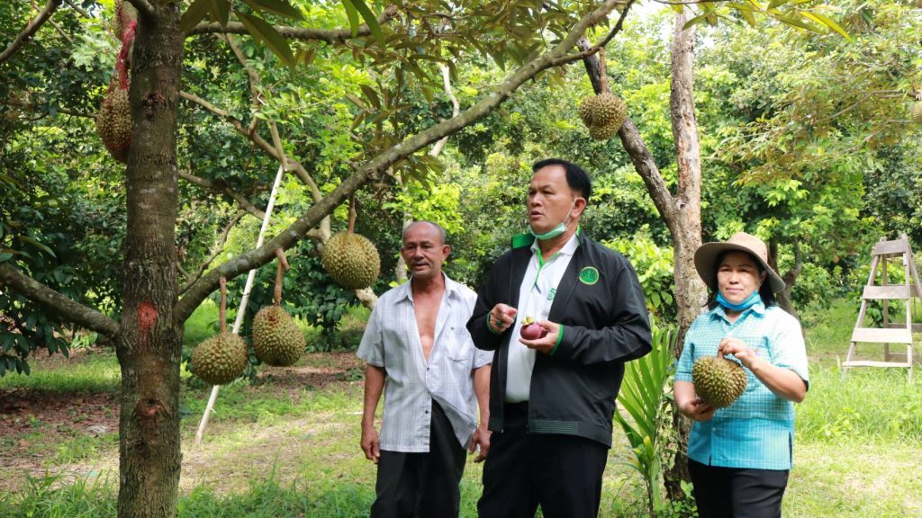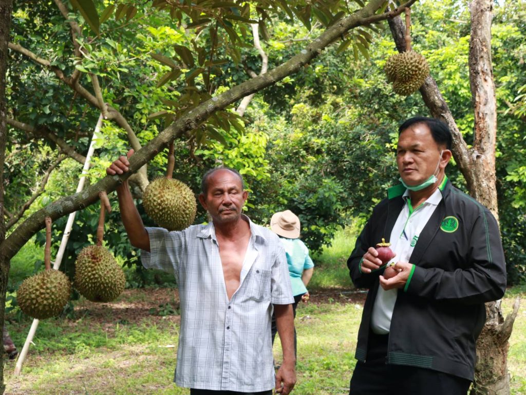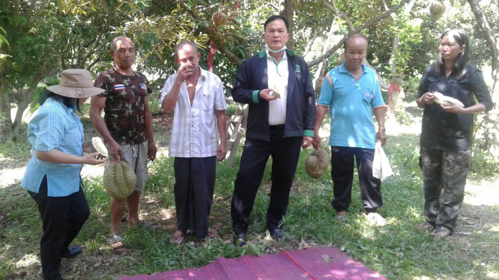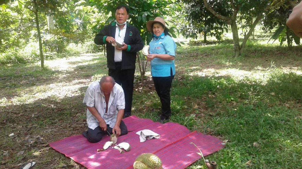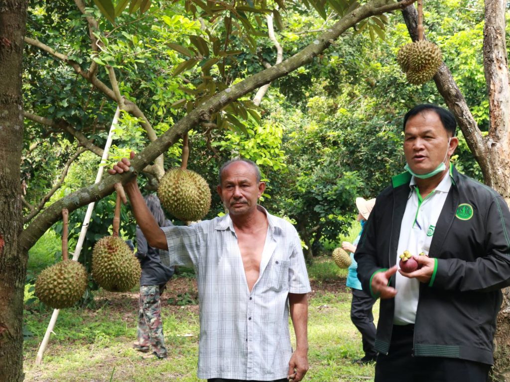 ซึ่งในการลงพื้นที่ครั้งนี้ ได้พบปะกับนายสมาน บัวสงค์ (ลุงแดง) เกษตรกรอายุ 66 ปี เดิมมีภูมิลำเนาอยู่ที่ อำเภอหลังสวน จังหวัดชุมพร ได้ย้ายถิ่นฐานมาอยู่กับภรรยาที่ บ้านน้ำพุ หมู่ที่ 6 ตำบลกกปลาซิว อำเภอภูพาน จังหวัดสกลนคร เมื่อปี 2553 จึงได้ดำเนินการปลูกไม้ผลแบบผสมผสานบนเนื้อที่ 4 ไร่ ชนิดไม้ผลที่ปลูกได้แก่ ทุเรียนพันธุ์หมอนทอง เงาะ มังคุด ลองกอง มะม่วง กาแฟ สะตอ ขนุน เป็นต้น โดยไม้ผลที่ออกสู่ตลาดในช่วงนี้ได้แก่ ทุเรียน ซึ่งมีการเก็บจำหน่ายมาแล้วประมาณ 300 กิโลกรัม ใสส่วนของรสชาดนั้น อร่อยไม่แพ้จากแหล่งปลูกอื่นๆ ด้านการตลาดนั้น ประชาชนและส่วนราชการต่างๆได้เข้าไปเยี่ยมชมสวนเป็นจำนวนมาก ทำให้มีการบอกกล่าวเล่าต่อถึงความอร่อย เนื้อละมุน และสามารถเข้าเยี่ยมชมสวน เพื่อศึกษาเรียนรู้และถ่ายภาพในแปลงได้ จึงมีการติดต่อขอซื้อและเข้ามาเรียนรู้เทคนิคการปลูกการทุเรียน และไม้ผลชนิดอื่นตลอด