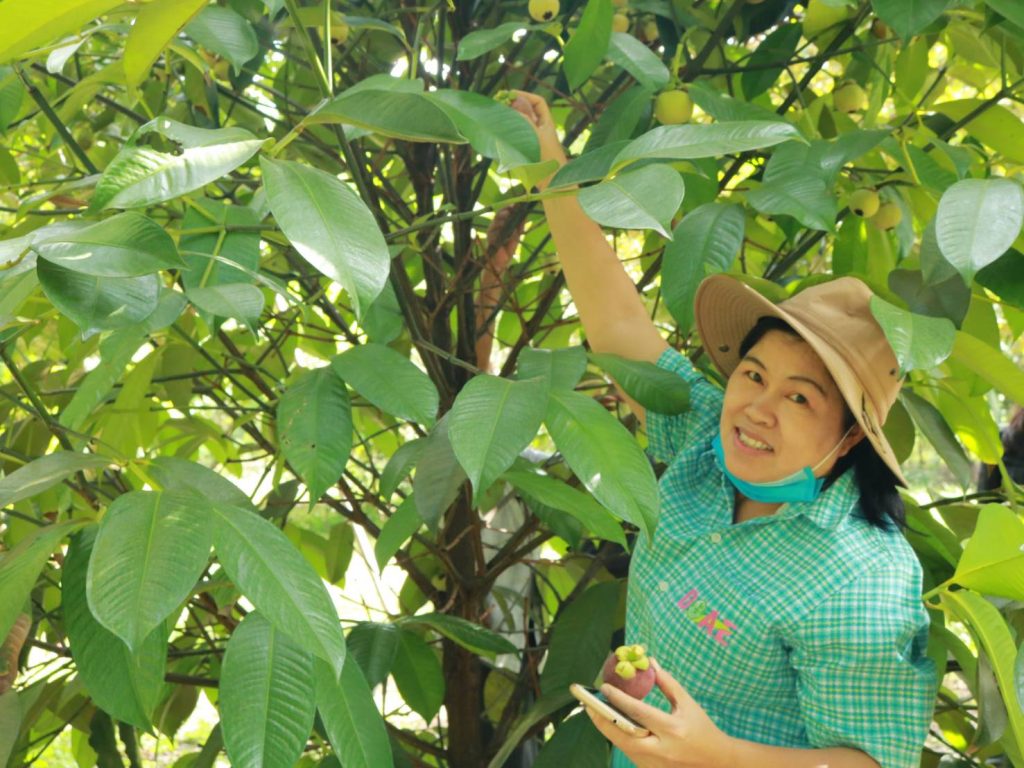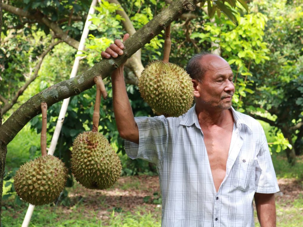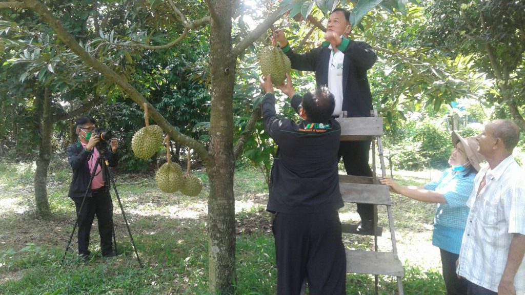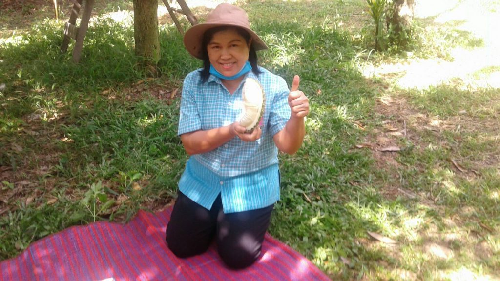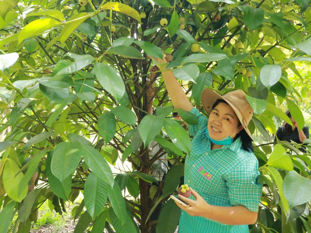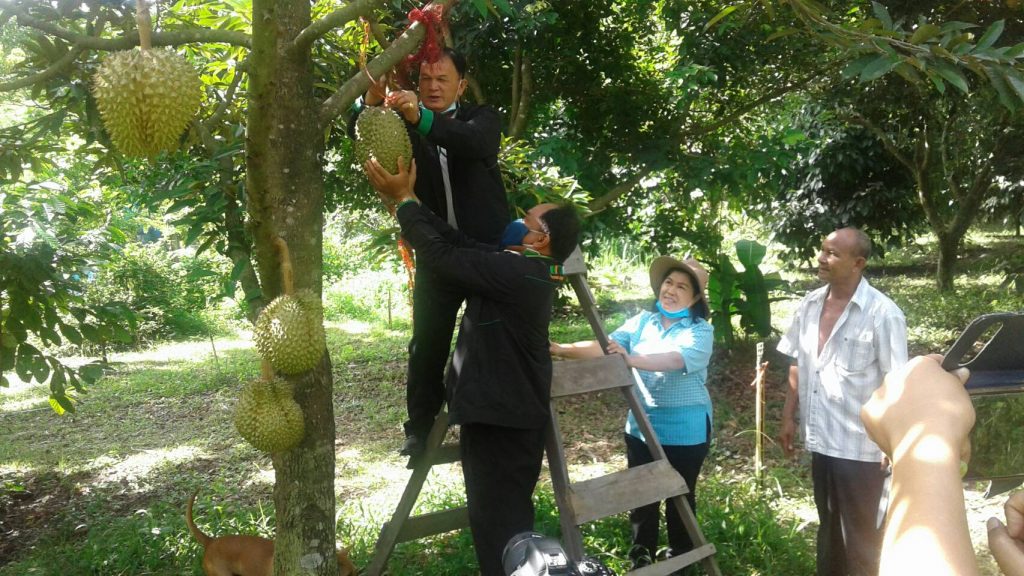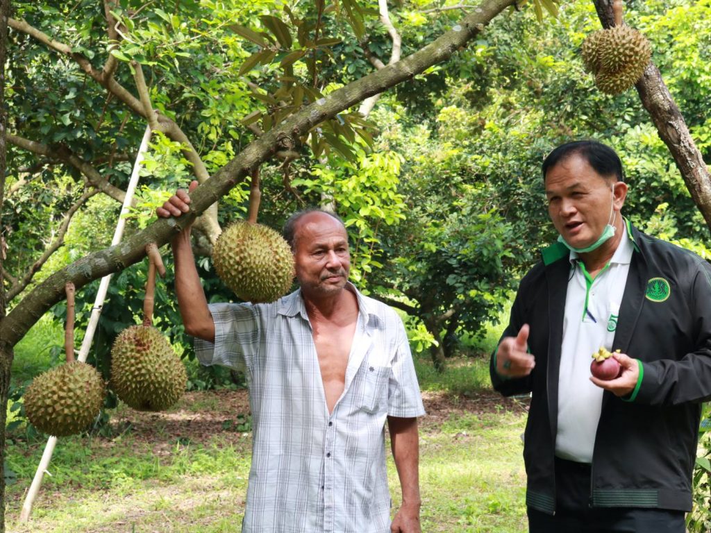 ซึ่งในการลงพื้นที่ครั้งนี้ ได้พบปะกับนายสมาน บัวสงค์ (ลุงแดง) เกษตรกรอายุ 66 ปี เดิมมีภูมิลำเนาอยู่ที่ อำเภอหลังสวน จังหวัดชุมพร ได้ย้ายถิ่นฐานมาอยู่กับภรรยาที่ บ้านน้ำพุ หมู่ที่ 6 ตำบลกกปลาซิว อำเภอภูพาน จังหวัดสกลนคร เมื่อปี 2553 จึงได้ดำเนินการปลูกไม้ผลแบบผสมผสานบนเนื้อที่ 4 ไร่ ชนิดไม้ผลที่ปลูกได้แก่ ทุเรียนพันธุ์หมอนทอง เงาะ มังคุด ลองกอง มะม่วง กาแฟ สะตอ ขนุน เป็นต้น โดยไม้ผลที่ออกสู่ตลาดในช่วงนี้ได้แก่ ทุเรียน ซึ่งมีการเก็บจำหน่ายมาแล้วประมาณ 300 กิโลกรัม ใสส่วนของรสชาดนั้น อร่อยไม่แพ้จากแหล่งปลูกอื่นๆ ด้านการตลาดนั้น ประชาชนและส่วนราชการต่างๆได้เข้าไปเยี่ยมชมสวนเป็นจำนวนมาก ทำให้มีการบอกกล่าวเล่าต่อถึงความอร่อย เนื้อละมุน และสามารถเข้าเยี่ยมชมสวน เพื่อศึกษาเรียนรู้และถ่ายภาพในแปลงได้ จึงมีการติดต่อขอซื้อและเข้ามาเรียนรู้เทคนิคการปลูกการทุเรียน และไม้ผลชนิดอื่นตลอด