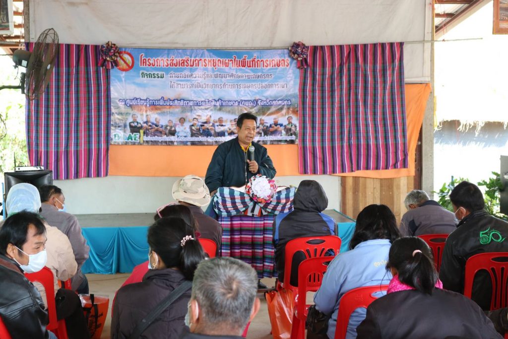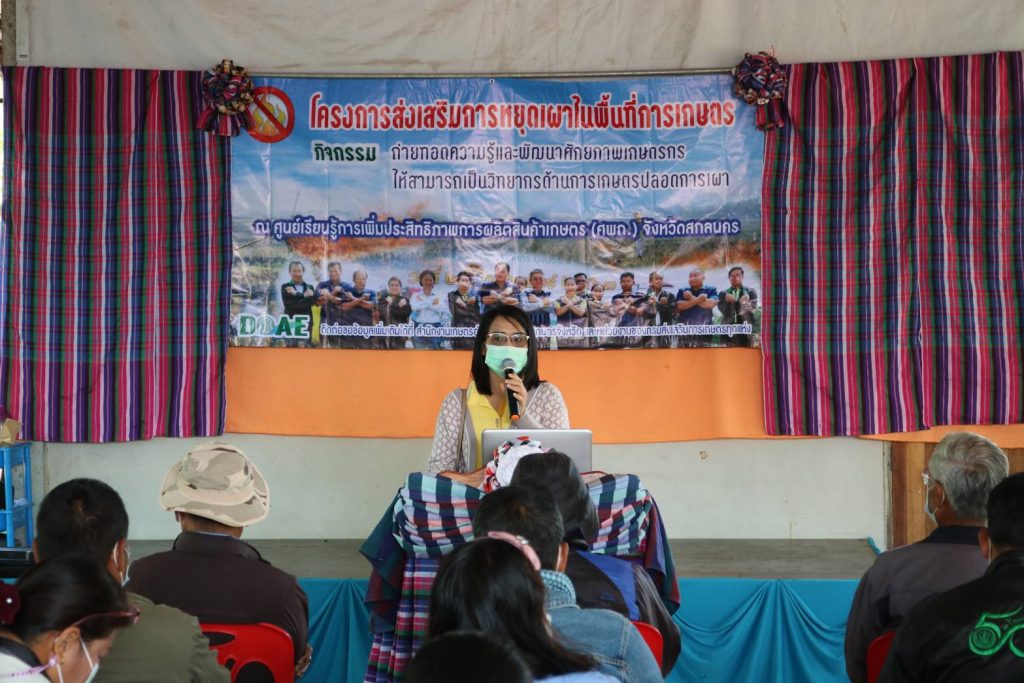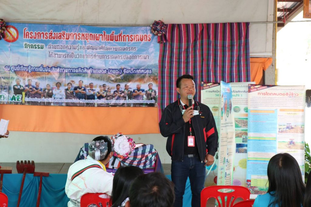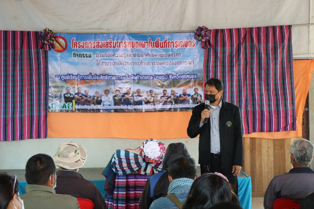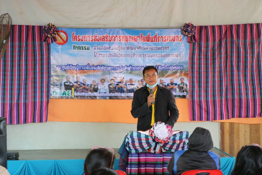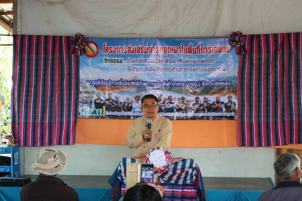 นายประยงค์ ภูดินทรายเกษตรจังหวัดสกลนคร มอบหมายให้เจ้าหน้าที่กลุ่มยุทธศาสตร์และสารสนเทศ สำนักงานเกษตรจังหวัดสกลนคร และสำนักงานเกษตรอำเภอสว่างแดนดิน ดำเนินจัดอบรมถ่ายทอดความรู้และพัฒนาศักยภาพเกษตรกรความรู้พื้นฐานเพื่อการหยุดเผาฯ โครงการส่งเสริมการหยุดเผาในพื้นที่การเกษตร เพื่อสร้างองค์ความรู้ด้านการหยุดเผาในพื้นที่การเกษตร ผลกระทบที่เกิดจาการเผาในพื้นที่การเกษตร นำเสนอทางเลือกและสาธิตการใช้เทคโนโลยีการเกษตรทดแทนการเผาแก่เกษตรกร เพื่อปรับเปลี่ยนทัศนคติและจิตสำนึกของเกษตรกรให้ยอมรับการทำการเกษตรแบบปลอดการเผา ตระหนักถึงผลเสียที่เกิดขึ้นจากการเผาในพื้นที่การเกษตรและพื้นที่ทั่วไป และนำเอาความรู้จากการร่วมงานรณรงค์ลดการเผาในท้องถิ่น ณ ศพก.ตำบลพันนา อำเภอสว่างแดนดิน จังหวัดสกลนคร